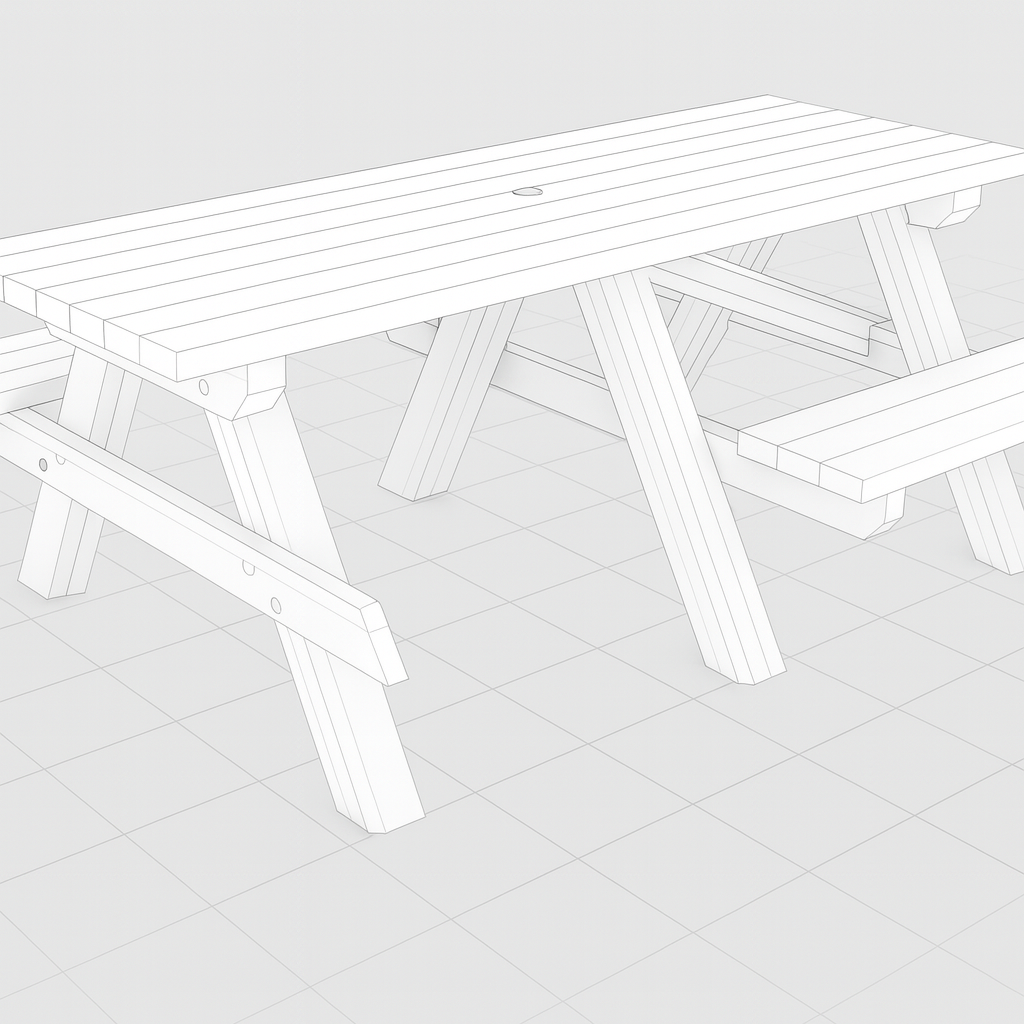 This project rethinks the classic picnic table with inclusivity at its core. The design preserves the familiar A-frame form, but adapts it to create seating that is equally welcoming to wheelchair users and non-wheelchair users. To maximize flexibility, the benches are fully removable—when not needed, they can be stored neatly on hooks at the ends of the frame. This allows the table to adapt to different group sizes, mobility needs, and social settings, without losing the recognizable feel of a traditional picnic table.