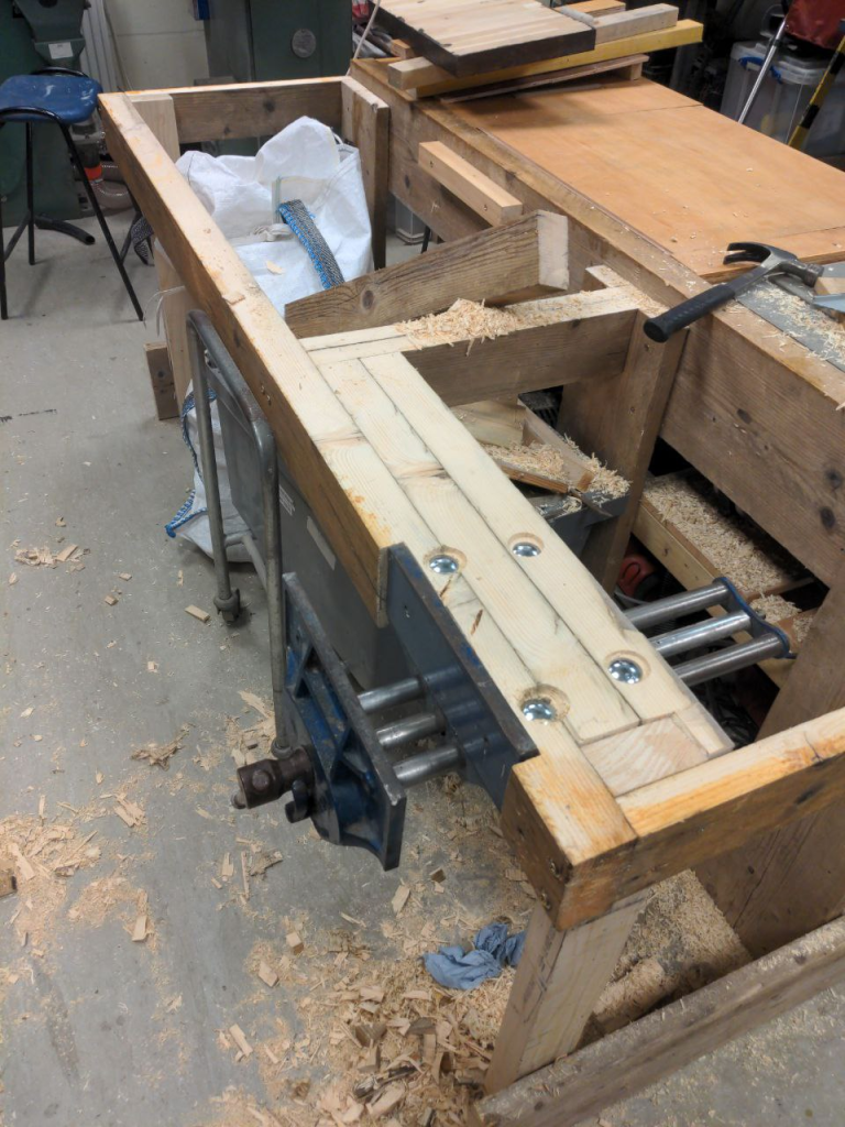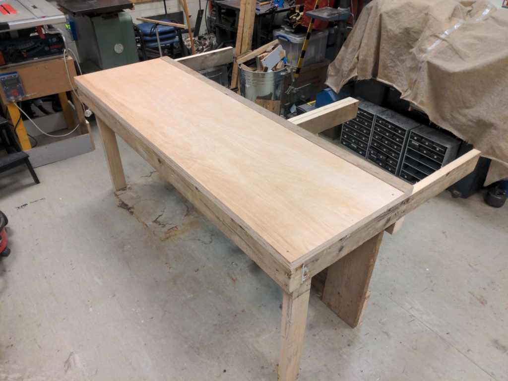 Top: Sacrificial plywood skins; quick to replace; dead-flat working surface